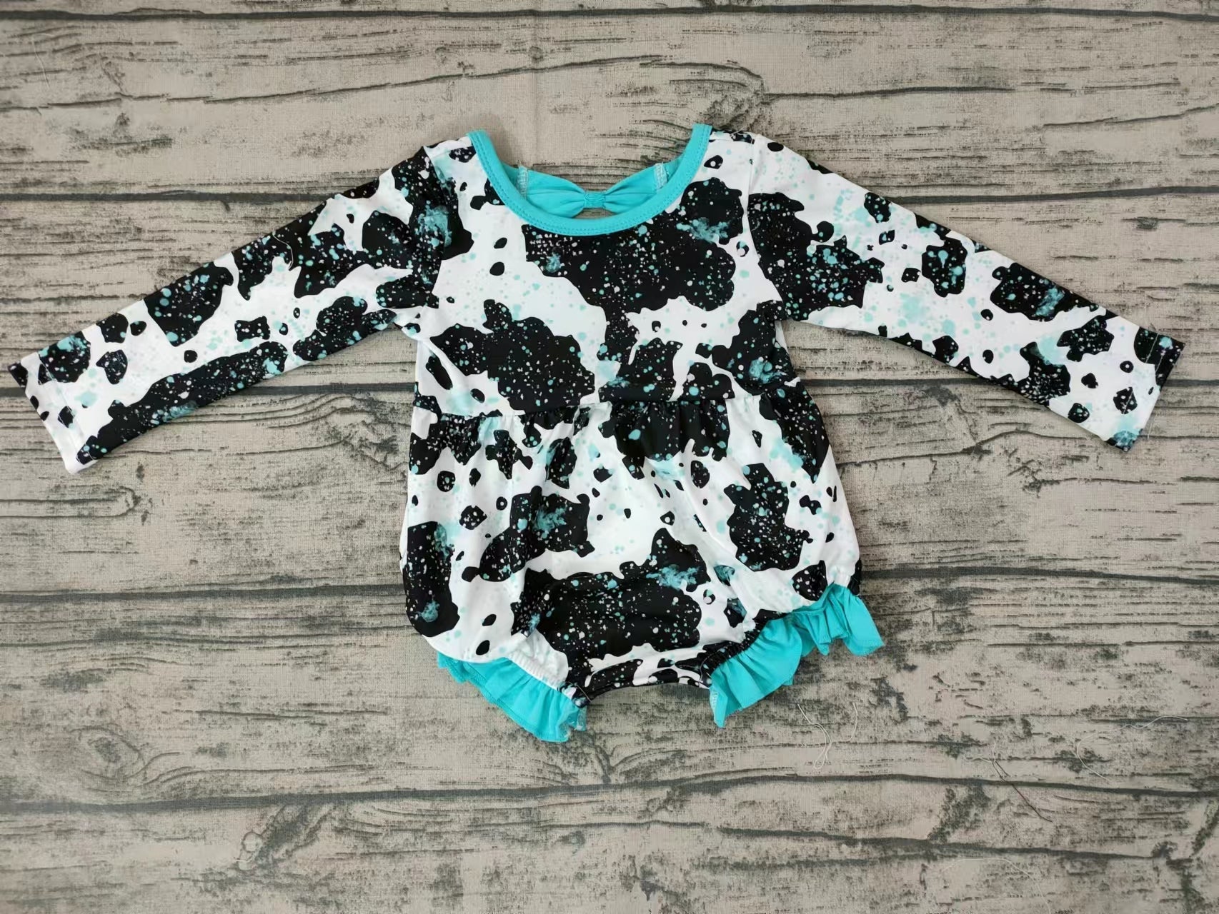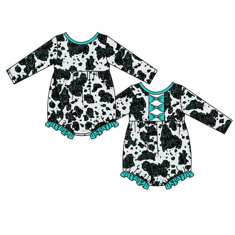 Baby cow blue leopard rompers