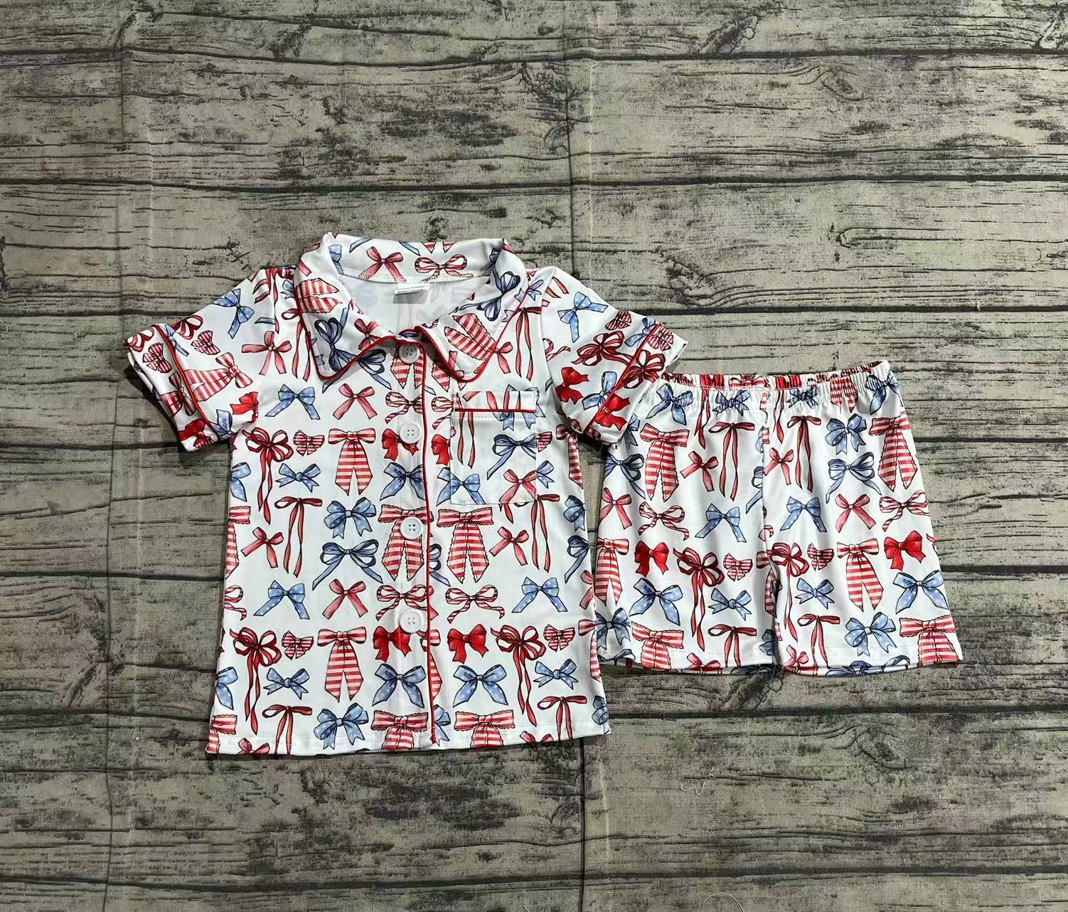 Baby Girls 4th Of July Bows Buttons Shirt Shorts Clothes Sets