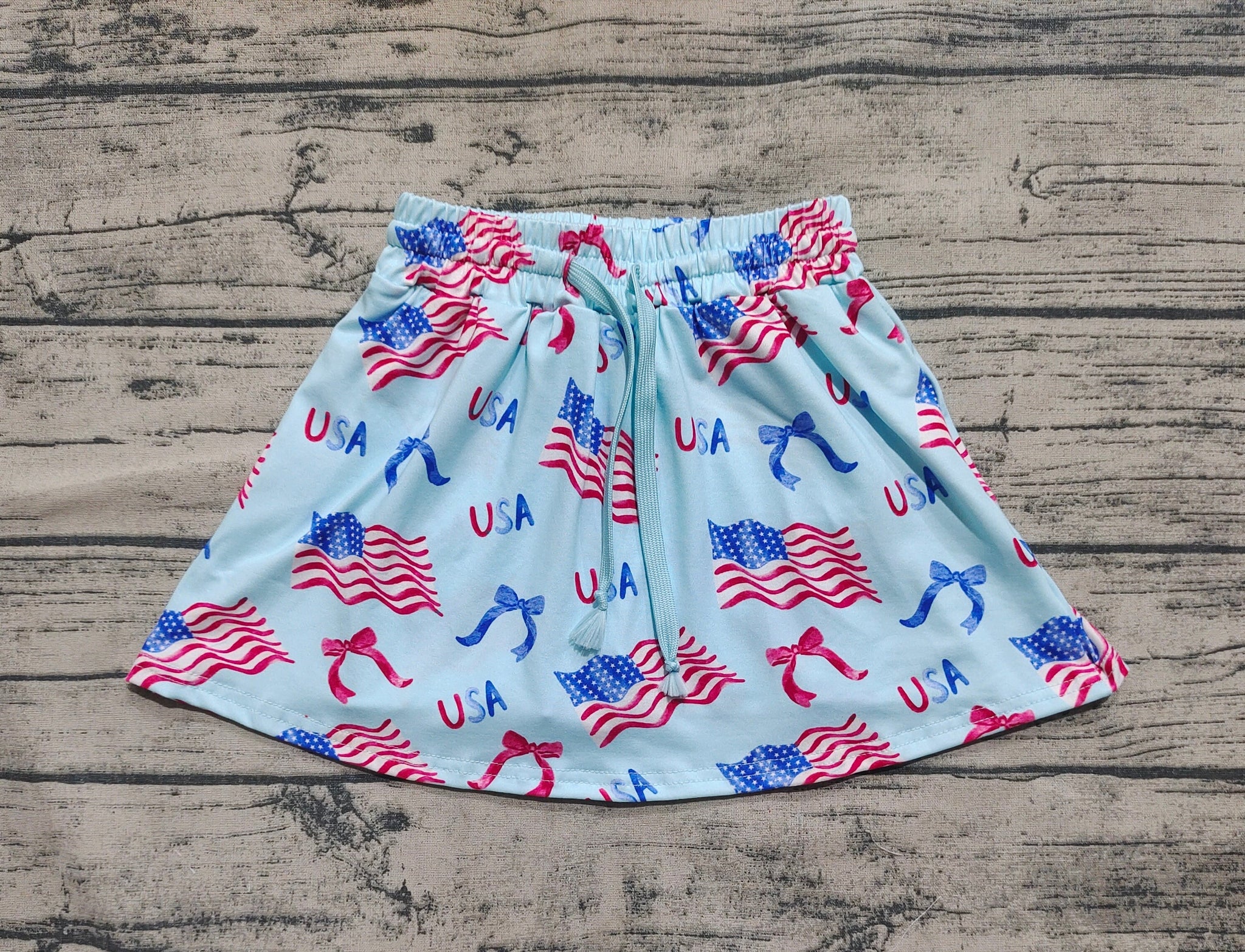 Baby Girls 4th Of July Flags Bows Summer Skort Skirts