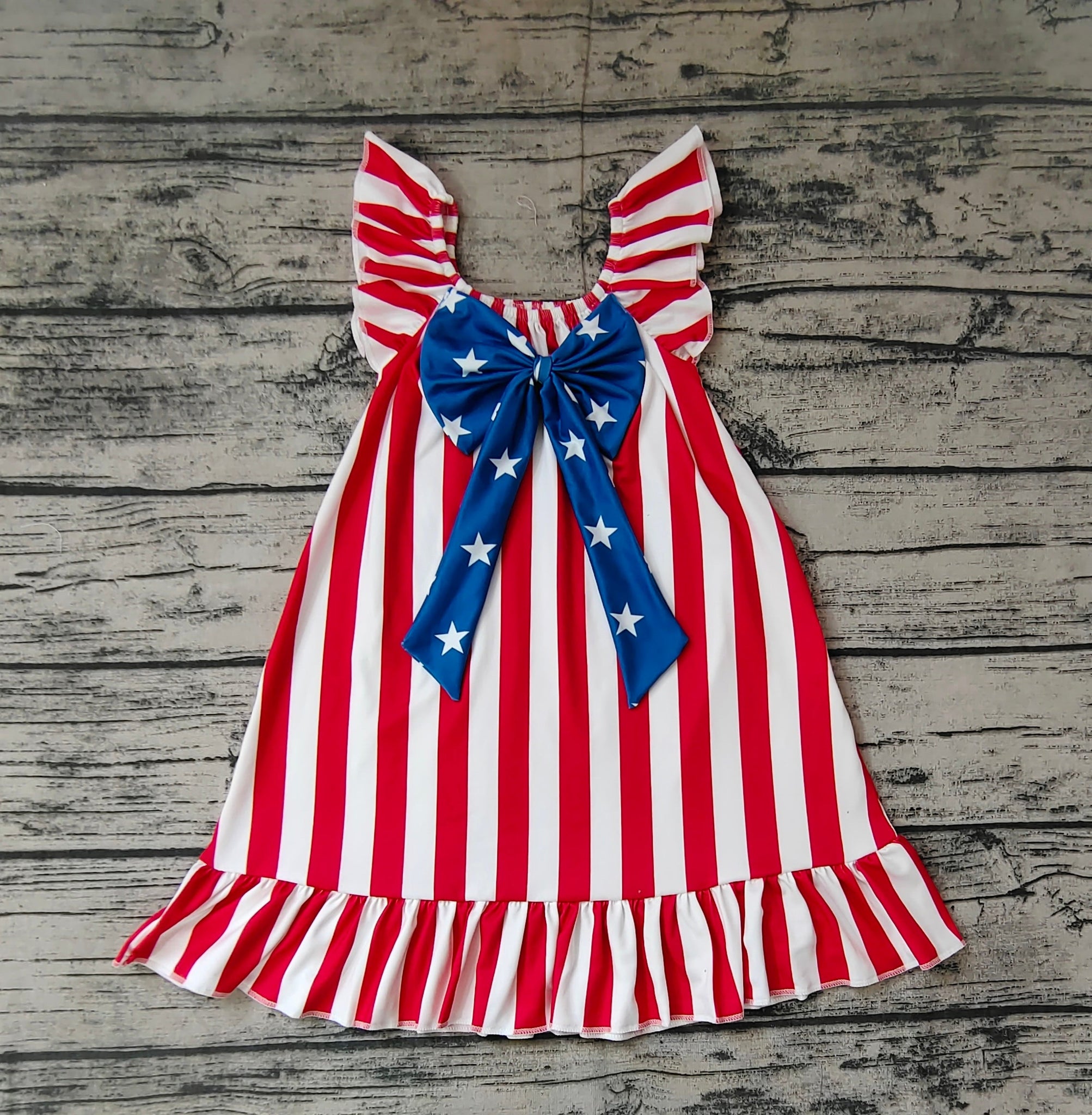 • Load image into Gallery viewer, Baby Girls 4Th Of July Red Stripes Big Bow Knee Length Dresses