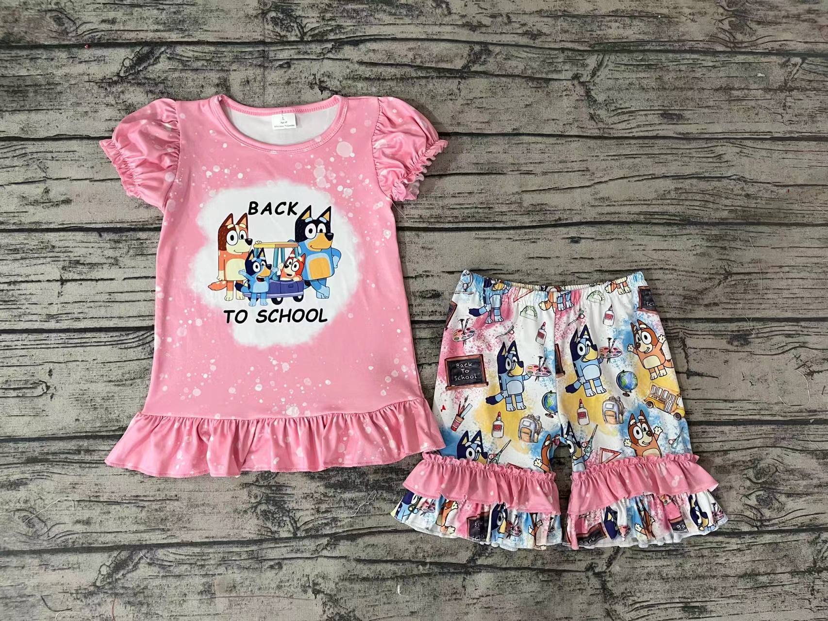 • Load image into Gallery viewer, Baby Girls Back To School Dogs Shorts Clothes Sets
