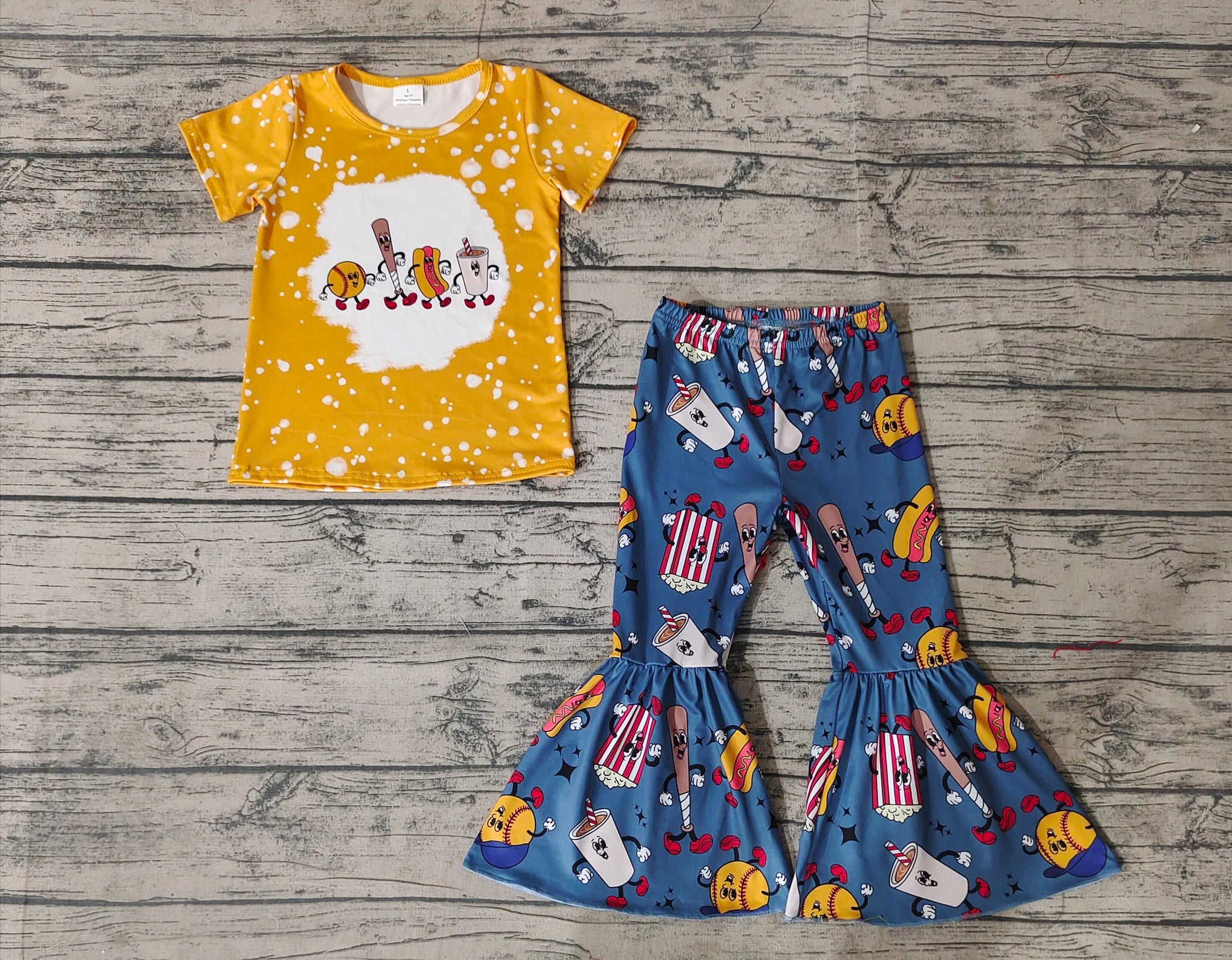 Baby Girls Baseball Short Sleeve Shirt Bell Pants Clothes Sets
