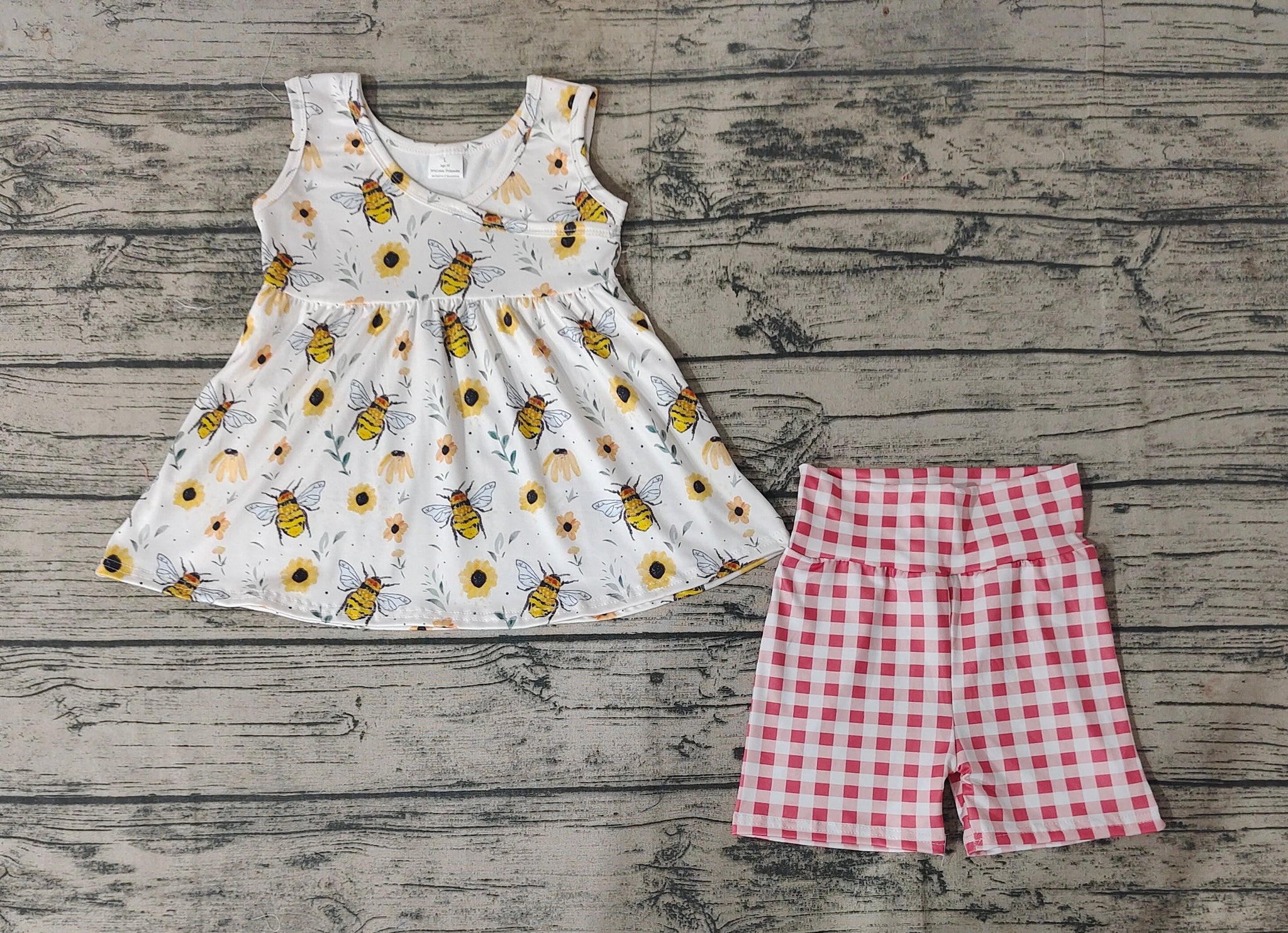 Baby Girls Bee Spring Tunic Top Checkered Shorts Clothes Sets