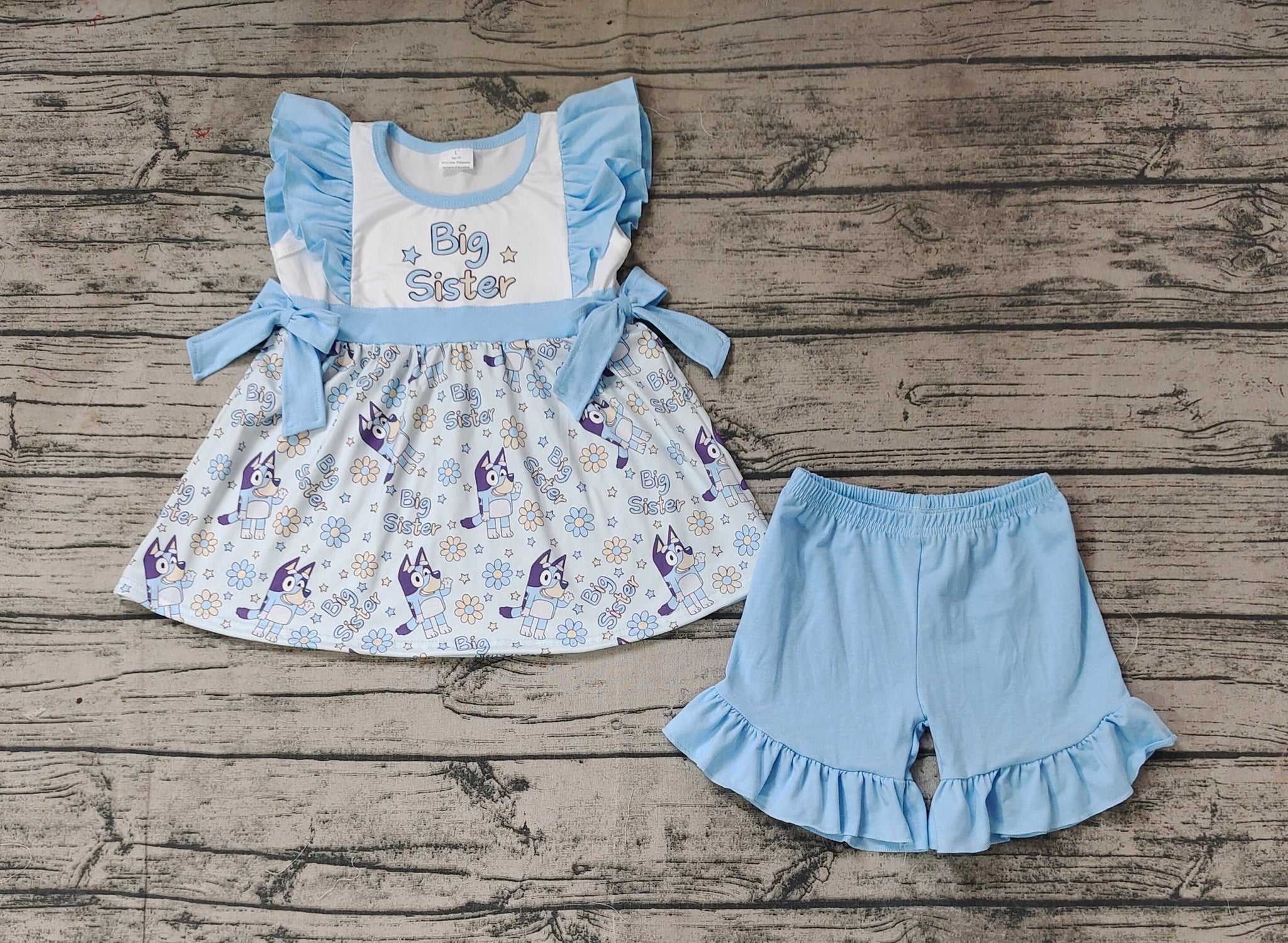 Baby Girls Big Sister Dog Tunic Ruffle Shorts Clothes Sets