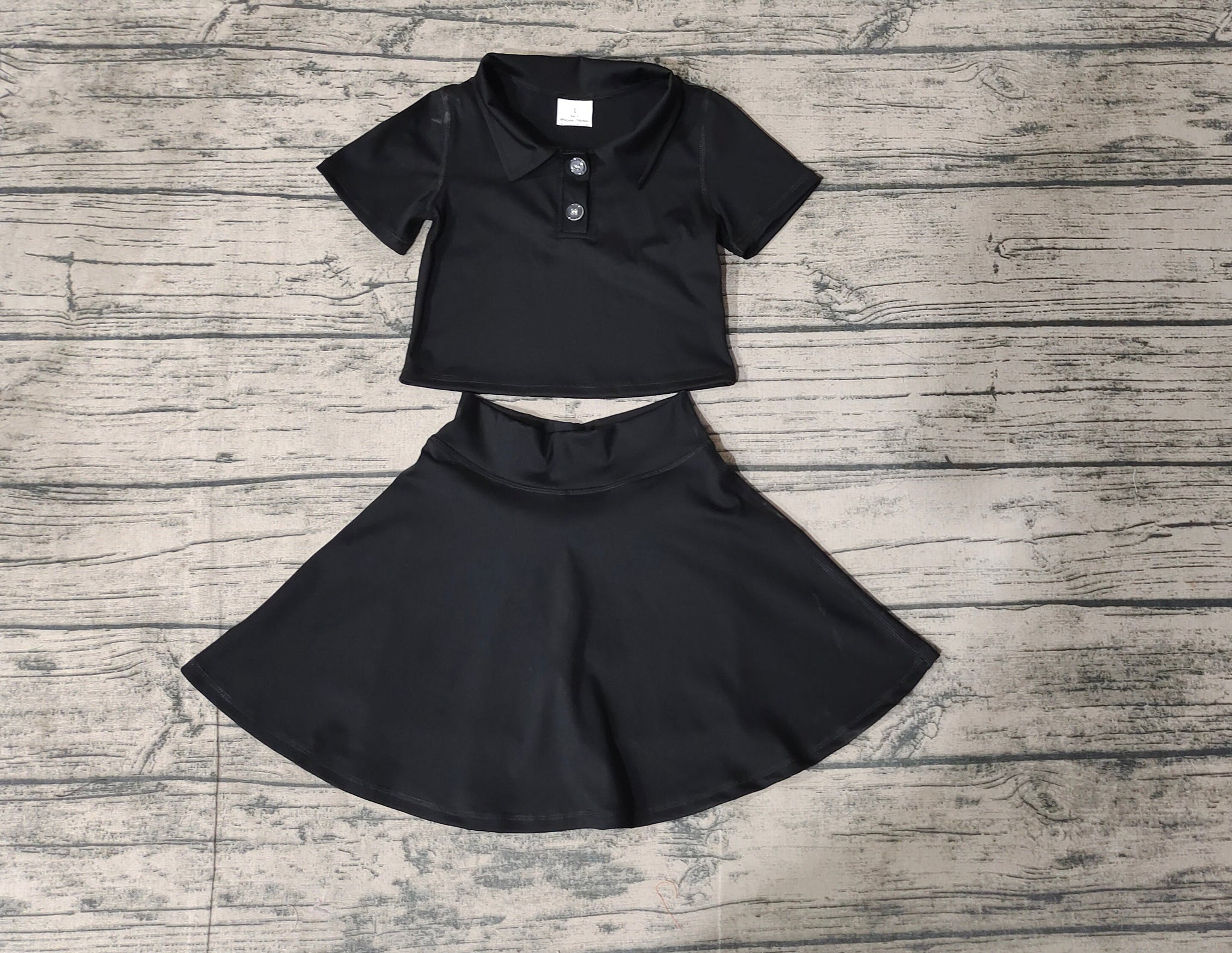 Baby Girls Black Buttons Shirt Skirt Active Wear Clothes Sets