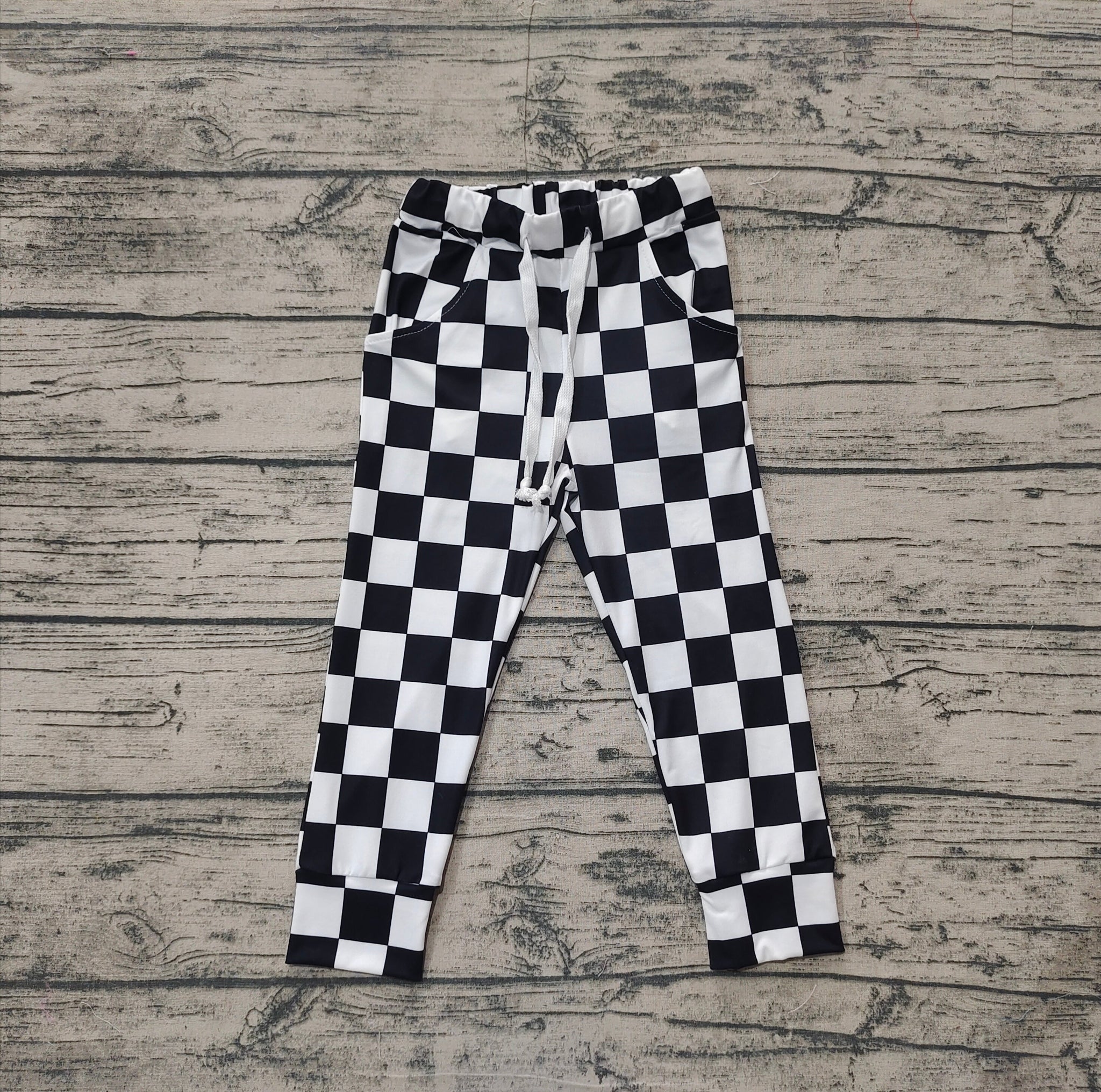 Baby Girls Black Checkered Jogger Pocket Pants