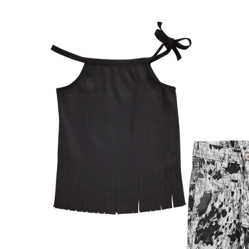 Baby Girls Black Halter Top Black Tie Dye Denim Pants Clothes Sets