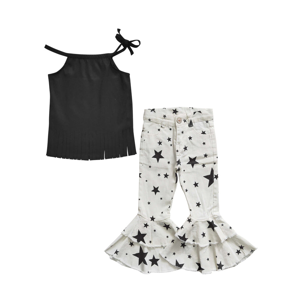 Material:Top is milk silk,bottom is denim ,soft and stretchy