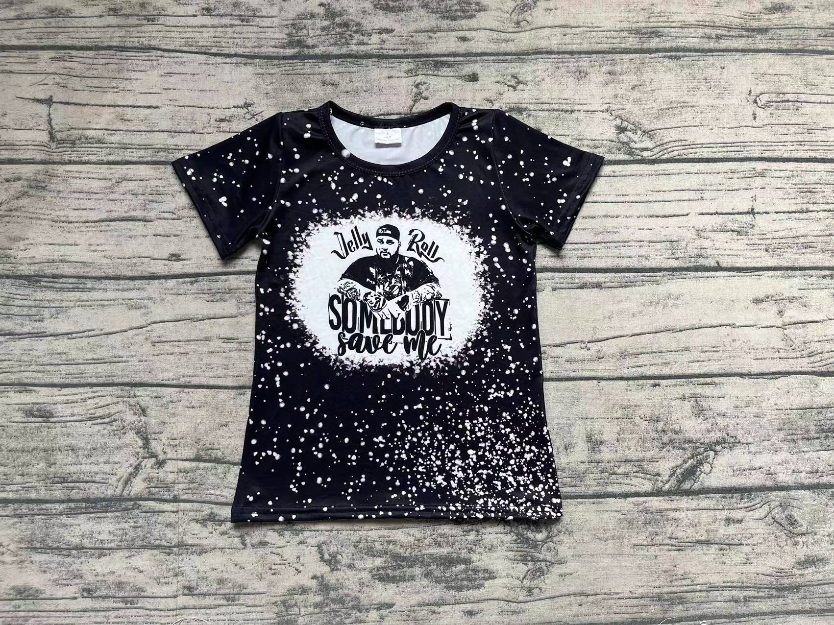 Baby Girls Black Singer Bleached Short Sleeve Tee Shirts Tops
