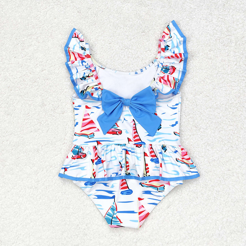 Baby Girls Blue Boats Bow Top Bummie Bows Swimsuits