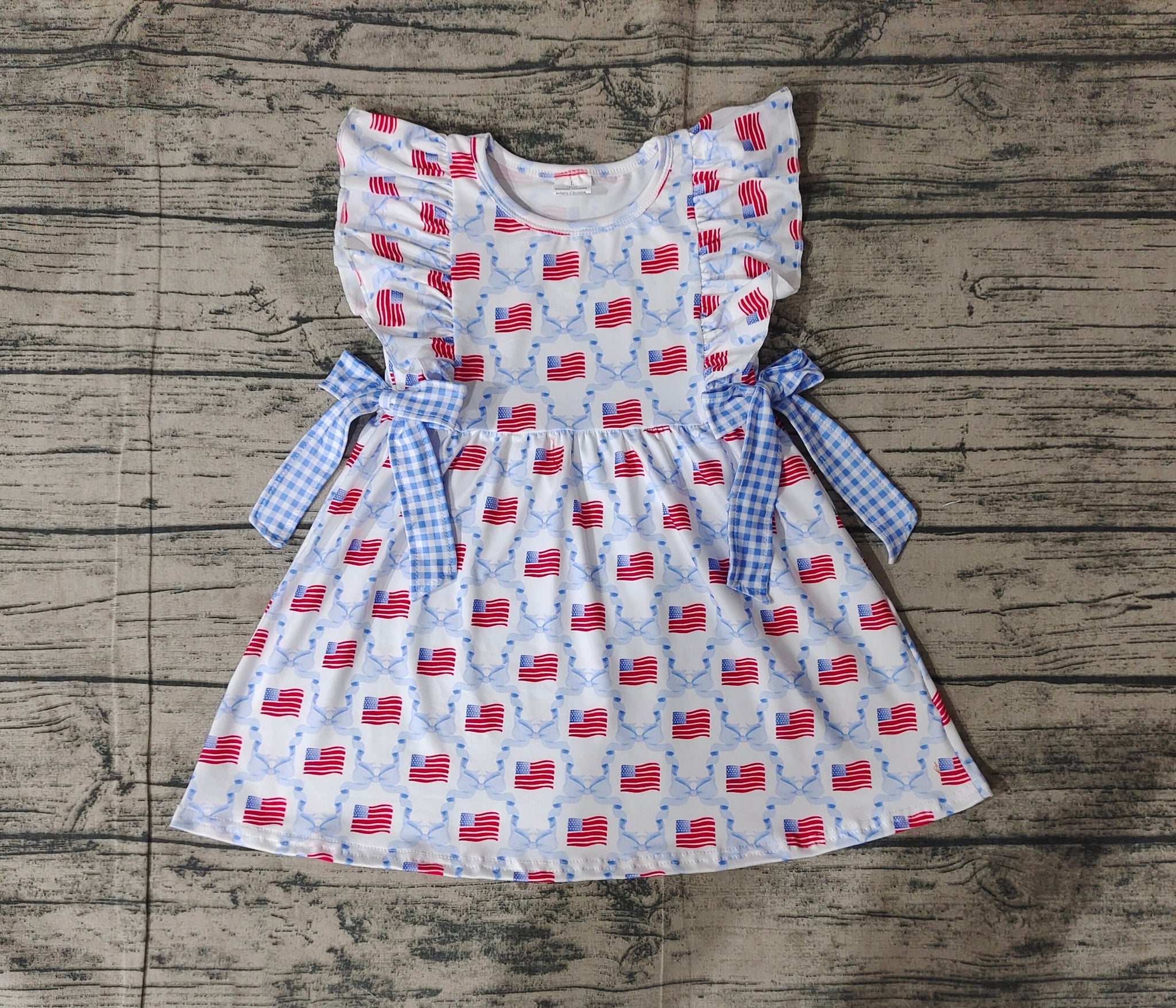 Baby Girls Blue Bows Flag Knee Length Dresses