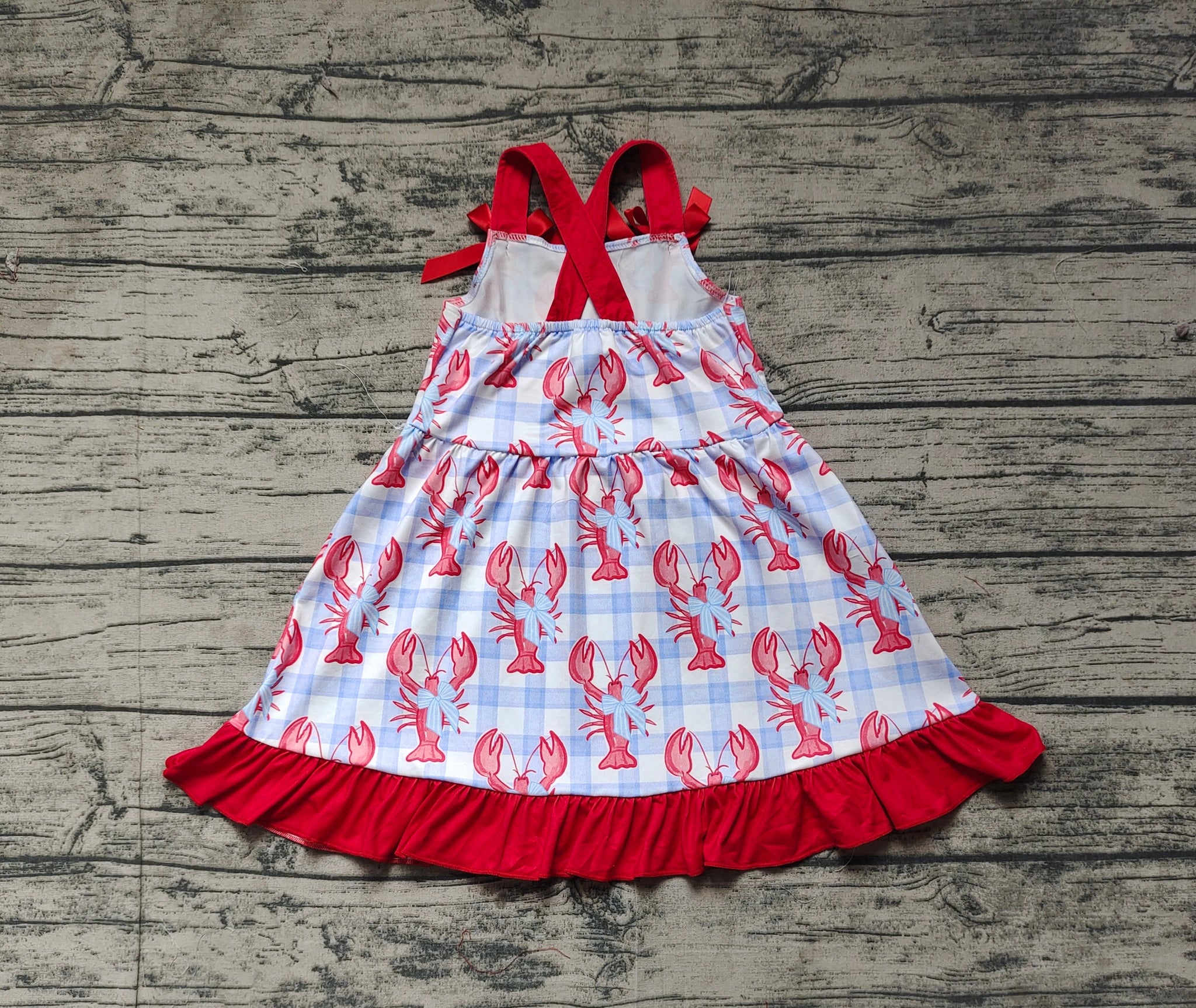 • Load image into Gallery viewer, Baby Girls Blue Checkered Crawfish Bow Ruffle Knee Length Dresses