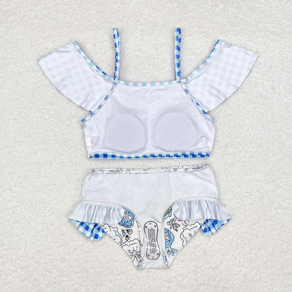 Baby Girls Blue Checkered Top Floral Bummie Two Pieces Swimsuits