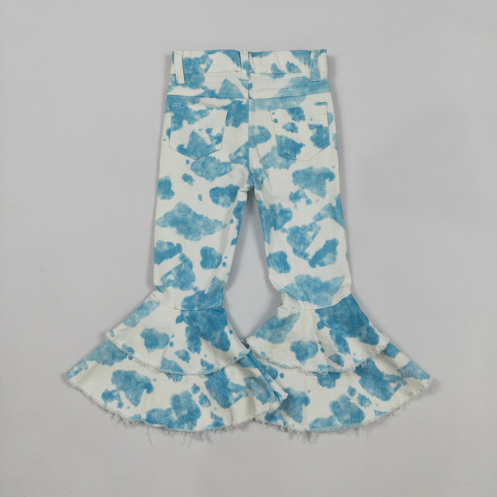 Baby Girls Blue Cow Print Denim Pants Bell Bottoms