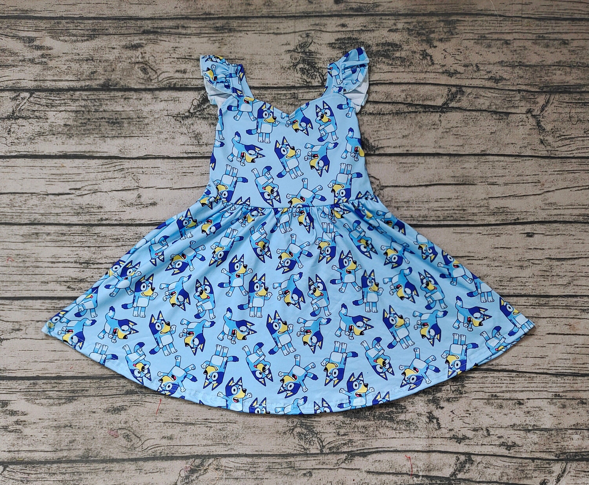 Baby Girls Blue Dogs Knee Length Ruffle Dresses