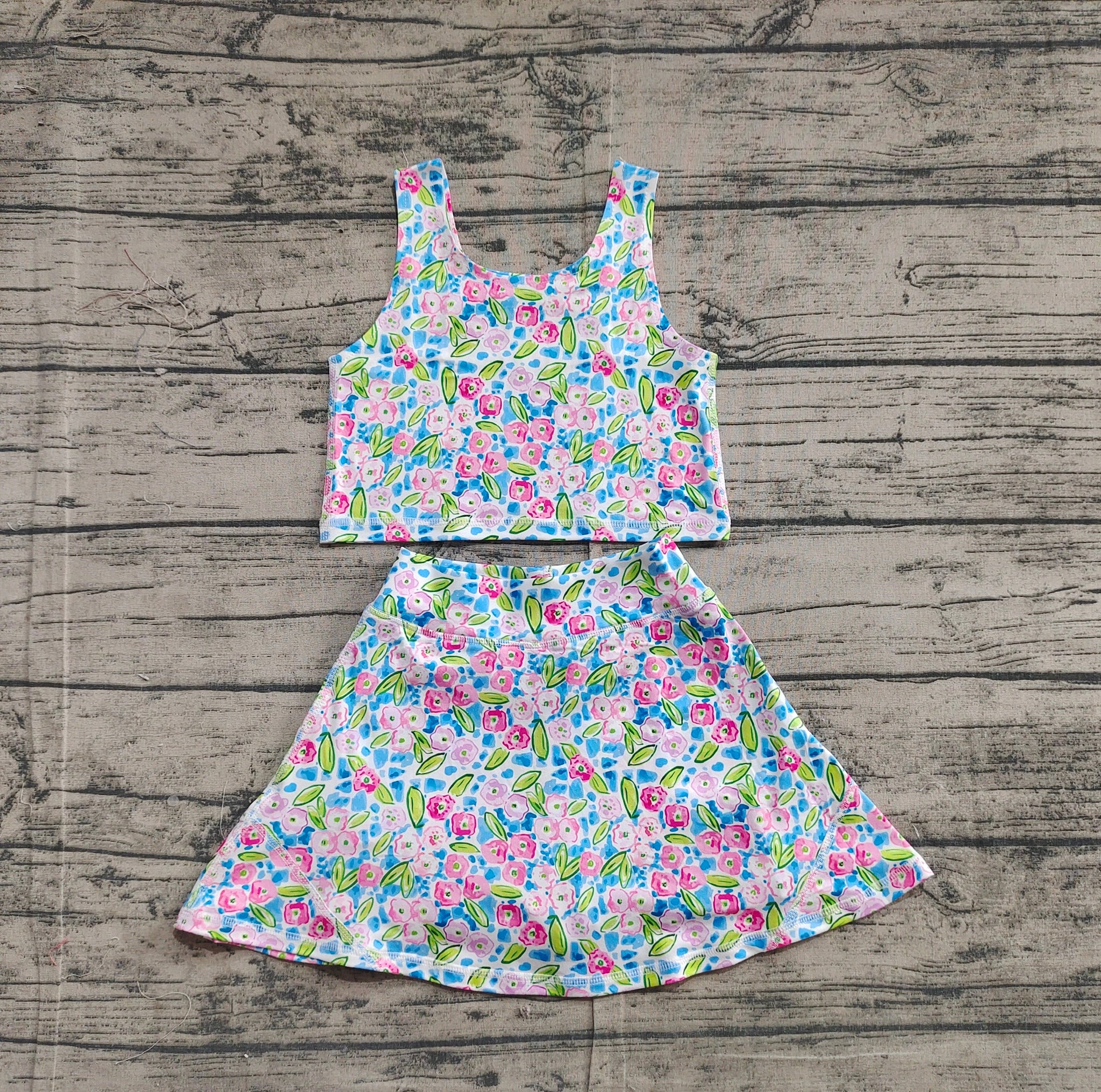 Baby Girls Blue Flowers Athletic Active Wear Top Shorts Skirts Tennise Outfits