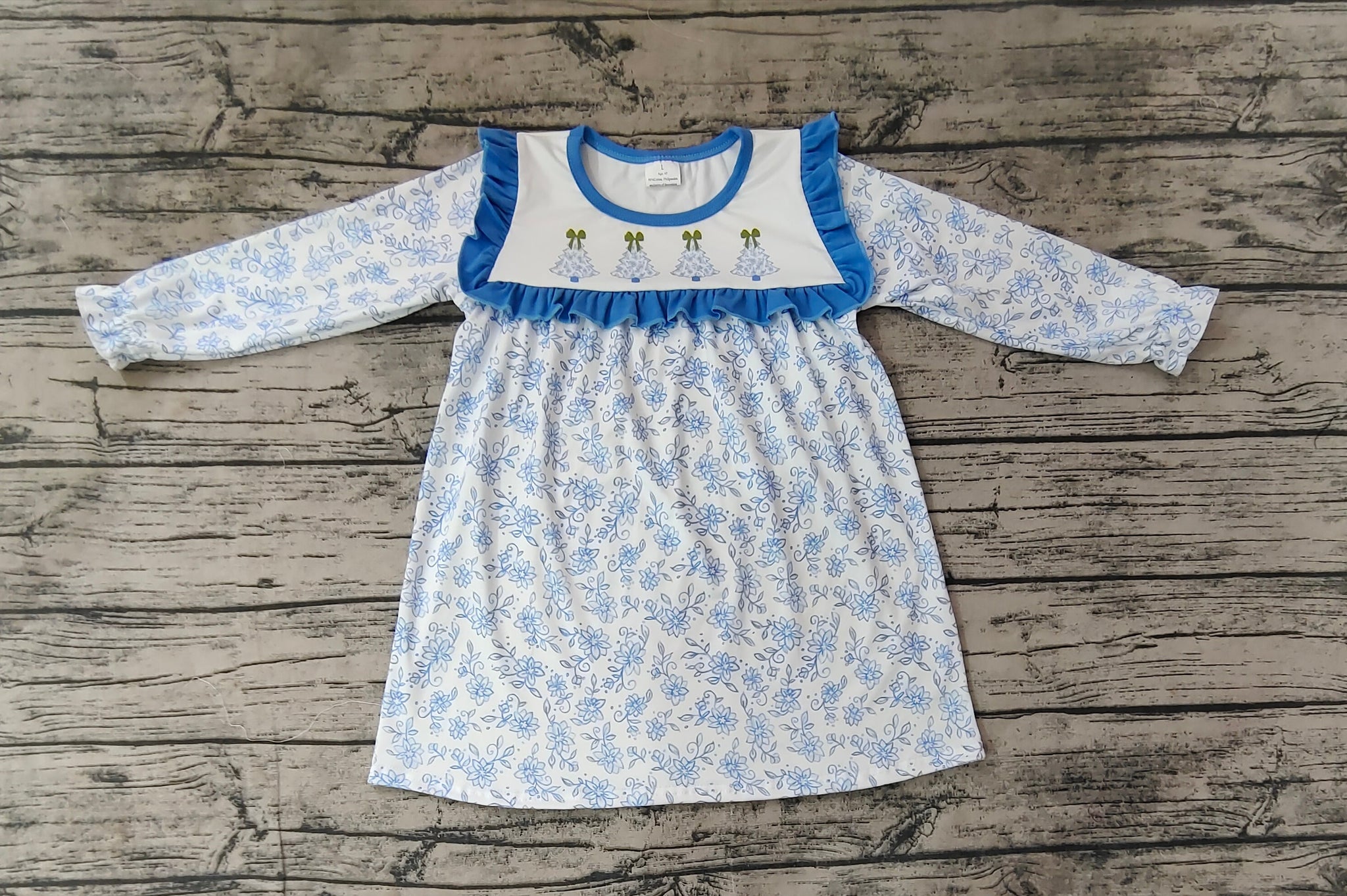 Baby Girls Blue Flowers Christmas Trees Knee Length Dresses