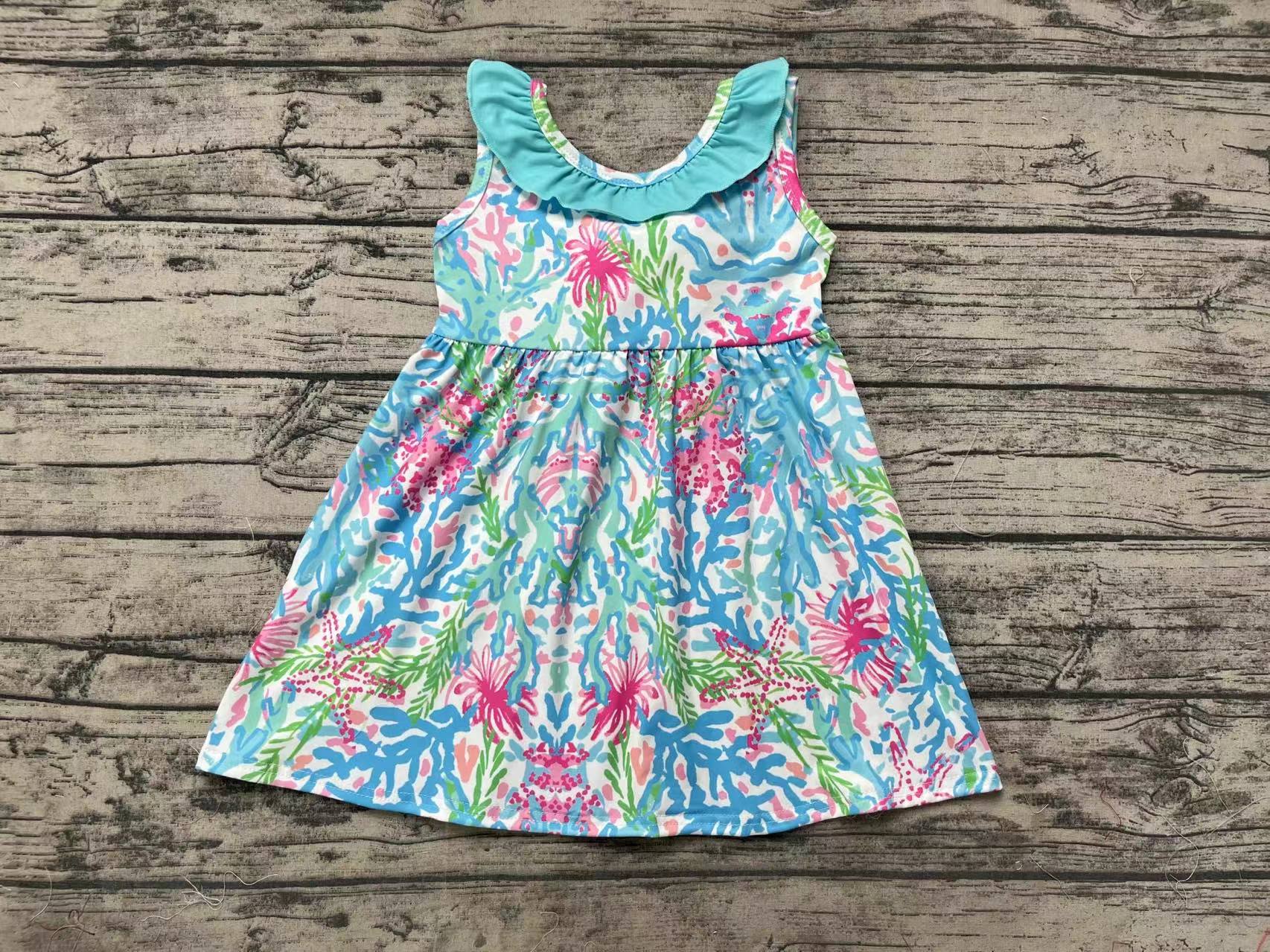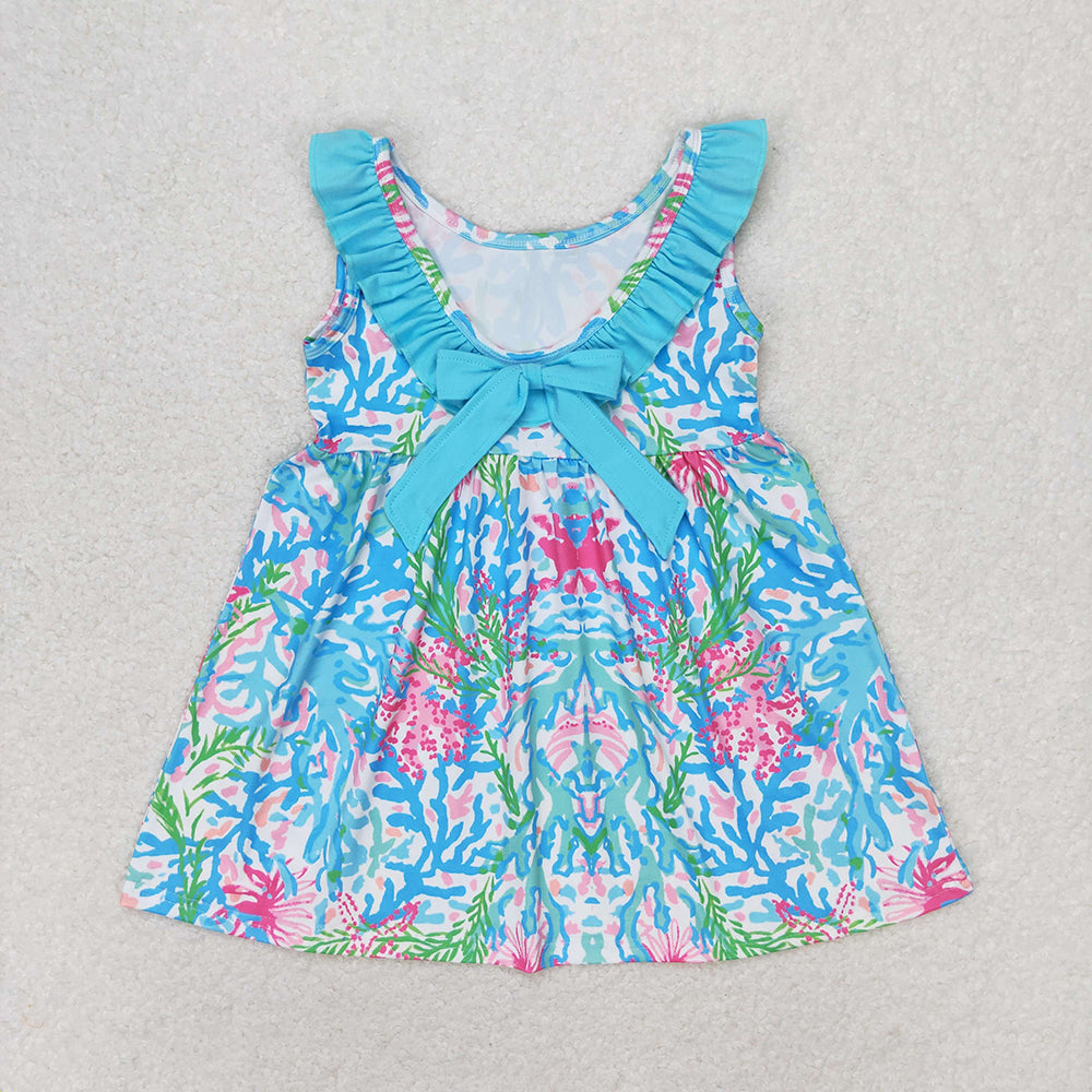 Baby Girls Blue Flowers Ruffle Knee Length Dresses