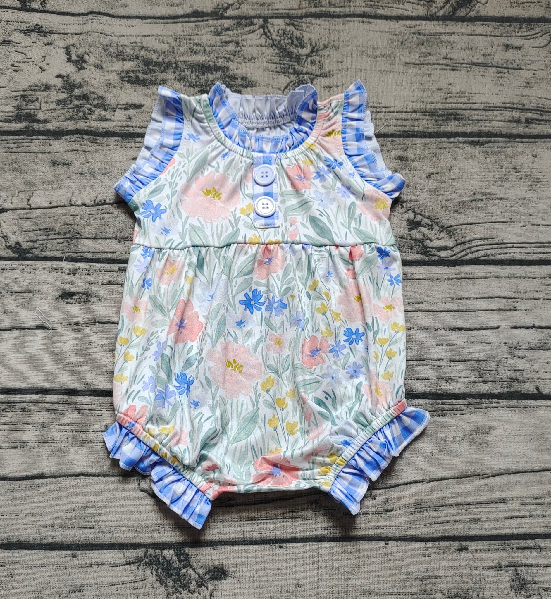 Baby Girls Blue Flowers Ruffle Sleeveless Rompers