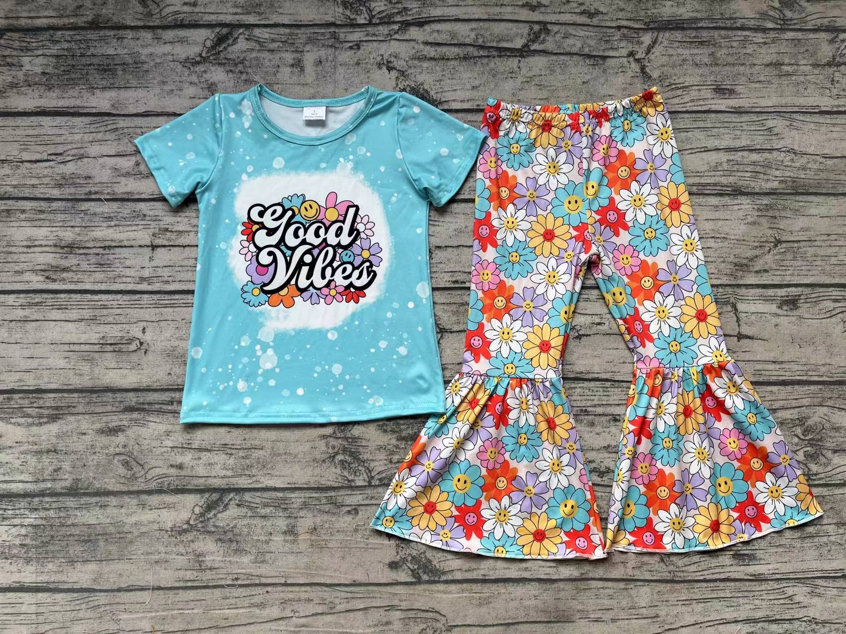 Baby Girls Blue Good Top Flowers Bell Pants Clothes Sets