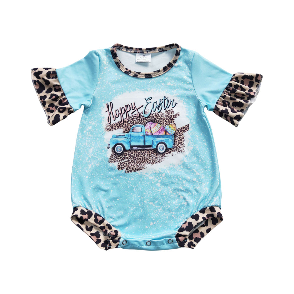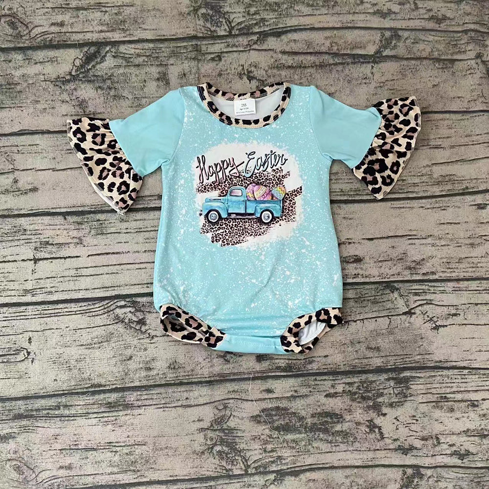 • Load image into Gallery viewer, Baby Girls Blue Happy Easter Bunny Rompers