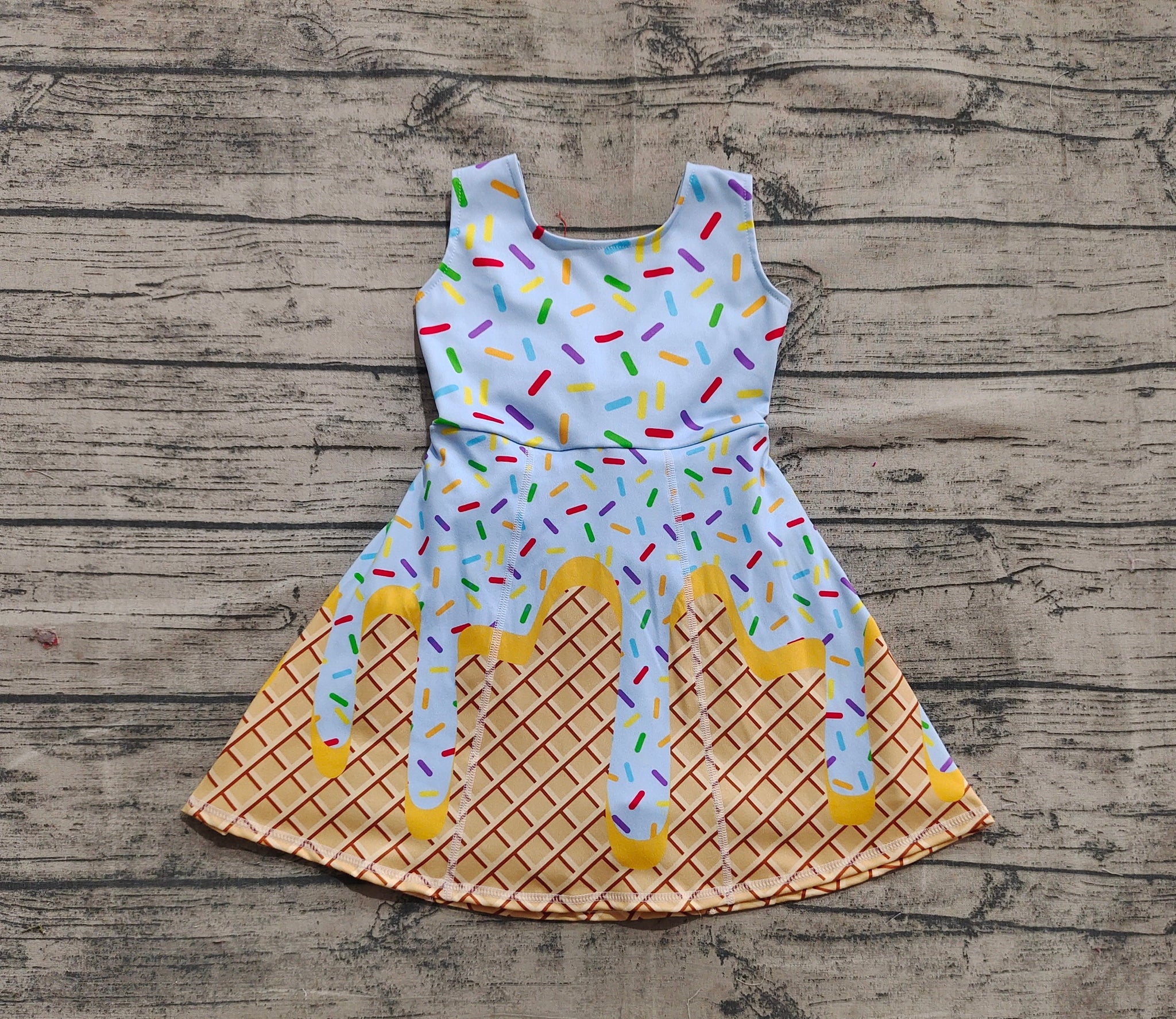 • Load image into Gallery viewer, Baby Girls Blue Ice-cream Drip Yoga Skort Knee Length Dresses