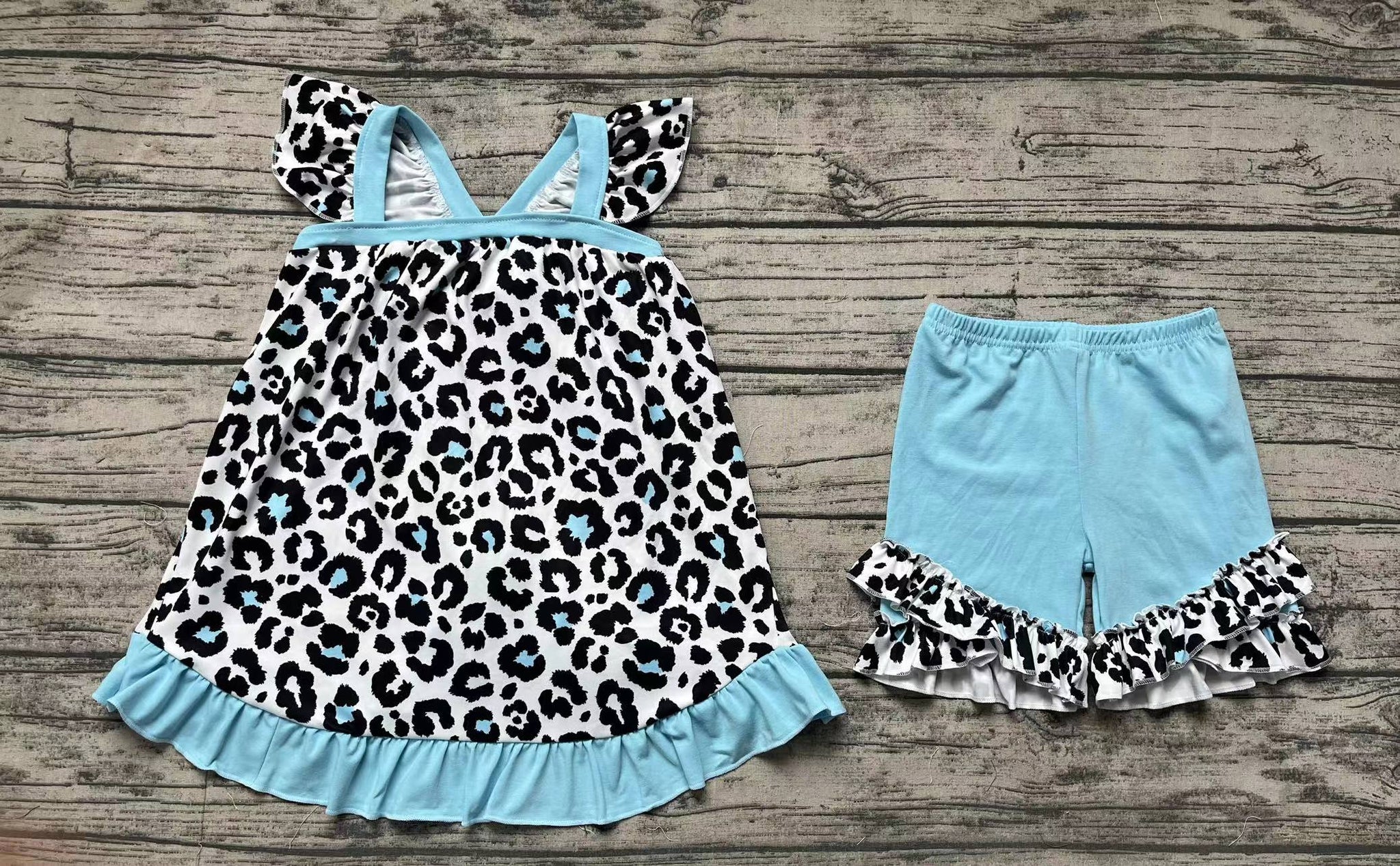 Baby Girls Blue Leopard Tunic Top Ruffle Shorts Clothes Sets