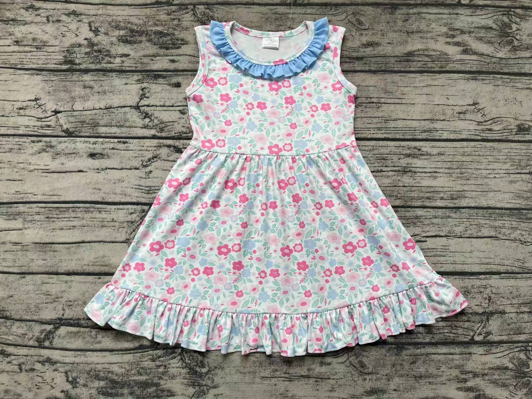 Baby Girls Blue Pink Flowers Sleeveless Knee Length Dresses