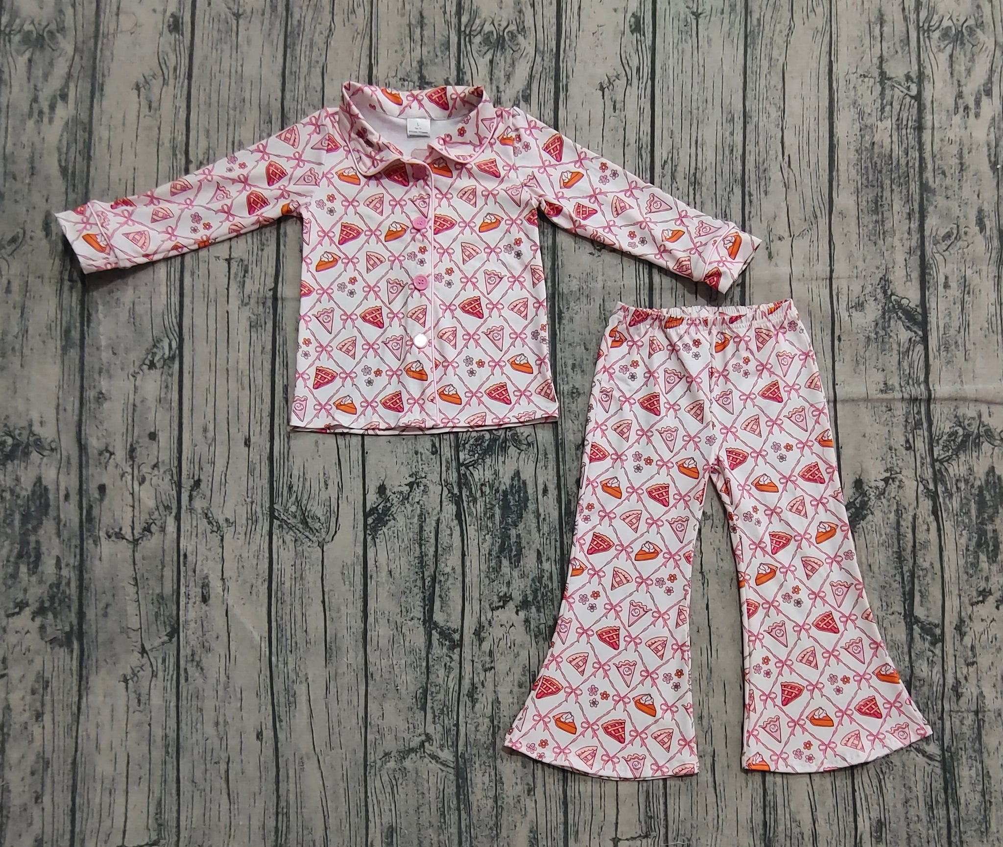 Baby Girls Bows Flowers Pie Checked Button Top Pant Thanksgiving Pajamas Set