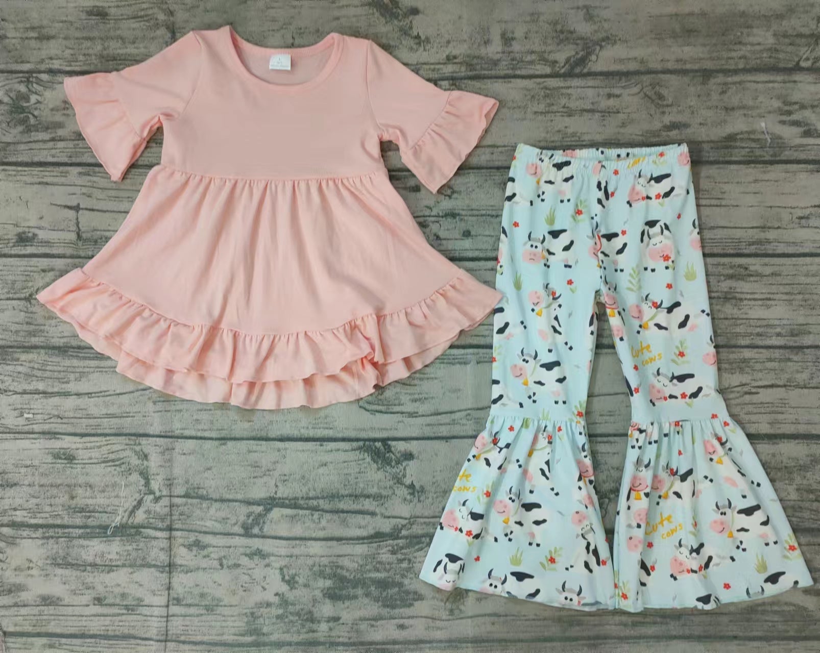 • Load image into Gallery viewer, Baby girls cow hi-low tunic bell pants clothes sets