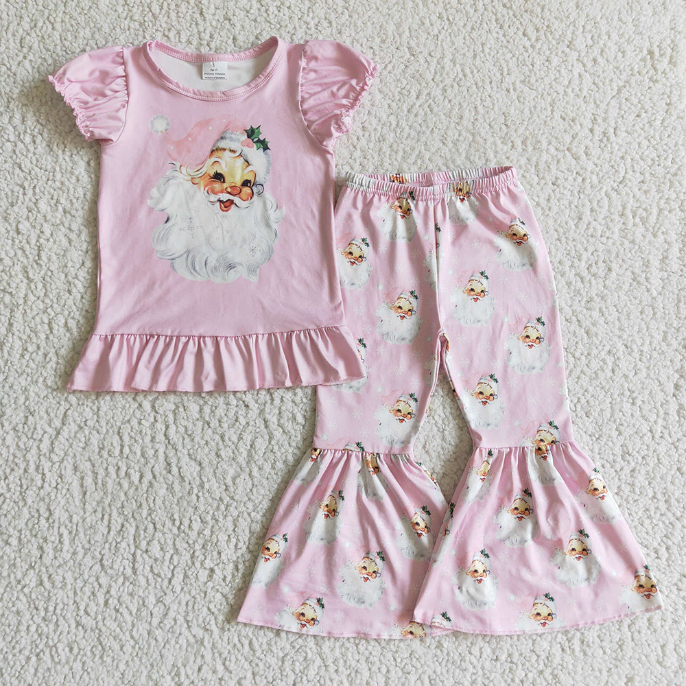 • Load image into Gallery viewer, Baby girls pink santa Christmas bell pants clothes sets