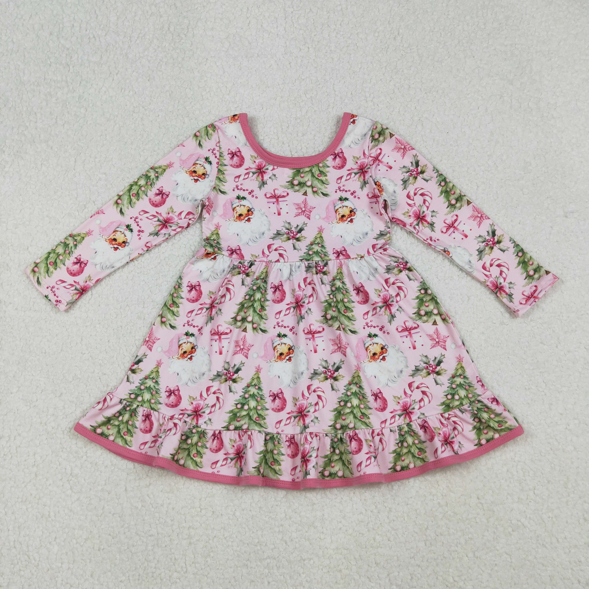 Baby Girls Santa Candy Cane Christmas Trees Ruffle Knee Length Dresses