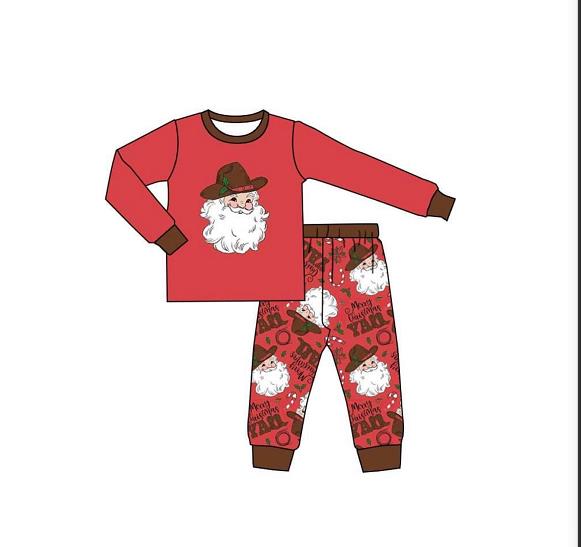 • Load image into Gallery viewer, Baby kids Christmas western santa pajamas pants sets