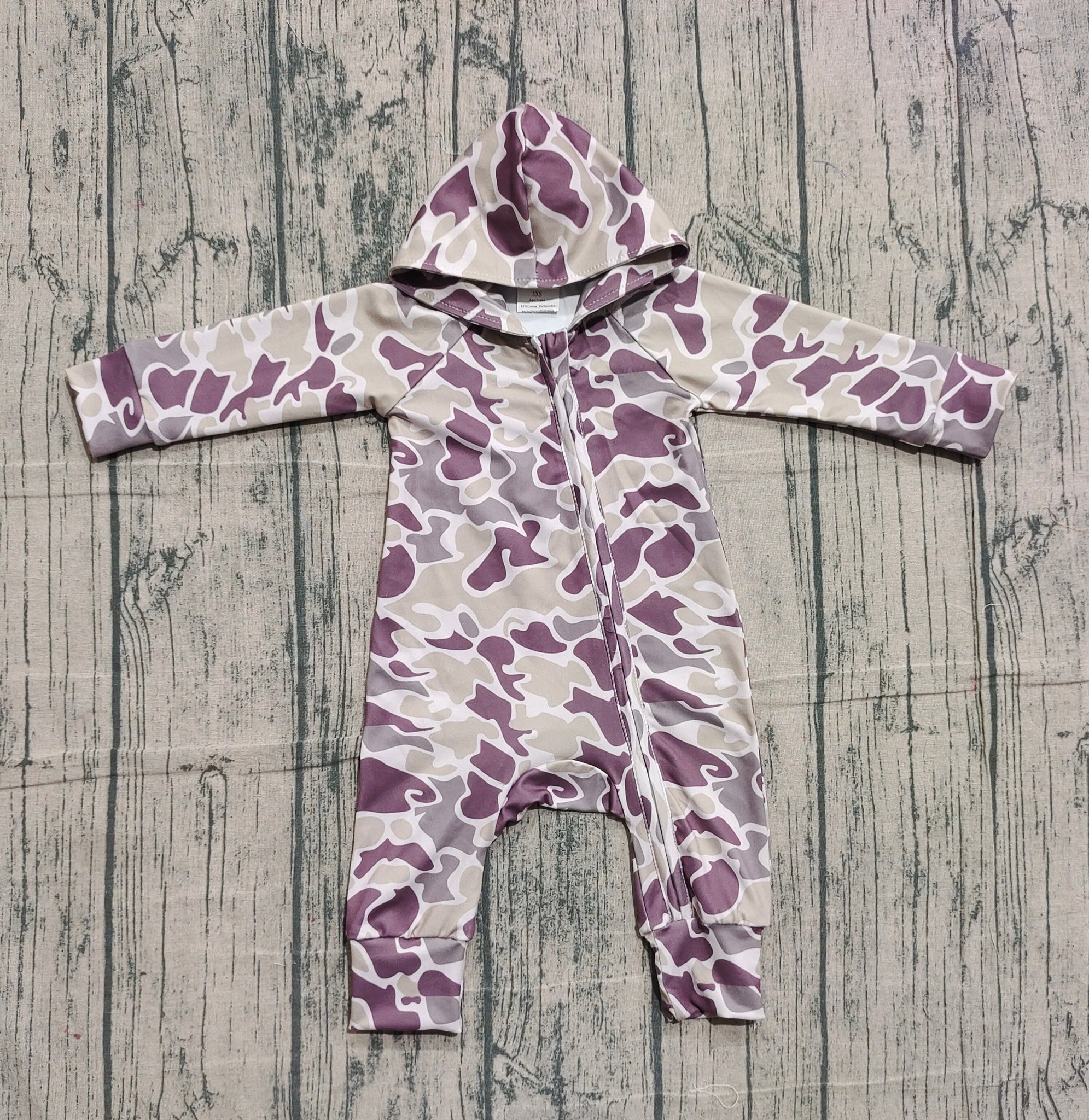 • Load image into Gallery viewer, Baby Boys Grey Camo Hoodie Hunting Two Way Converbitle Rompers