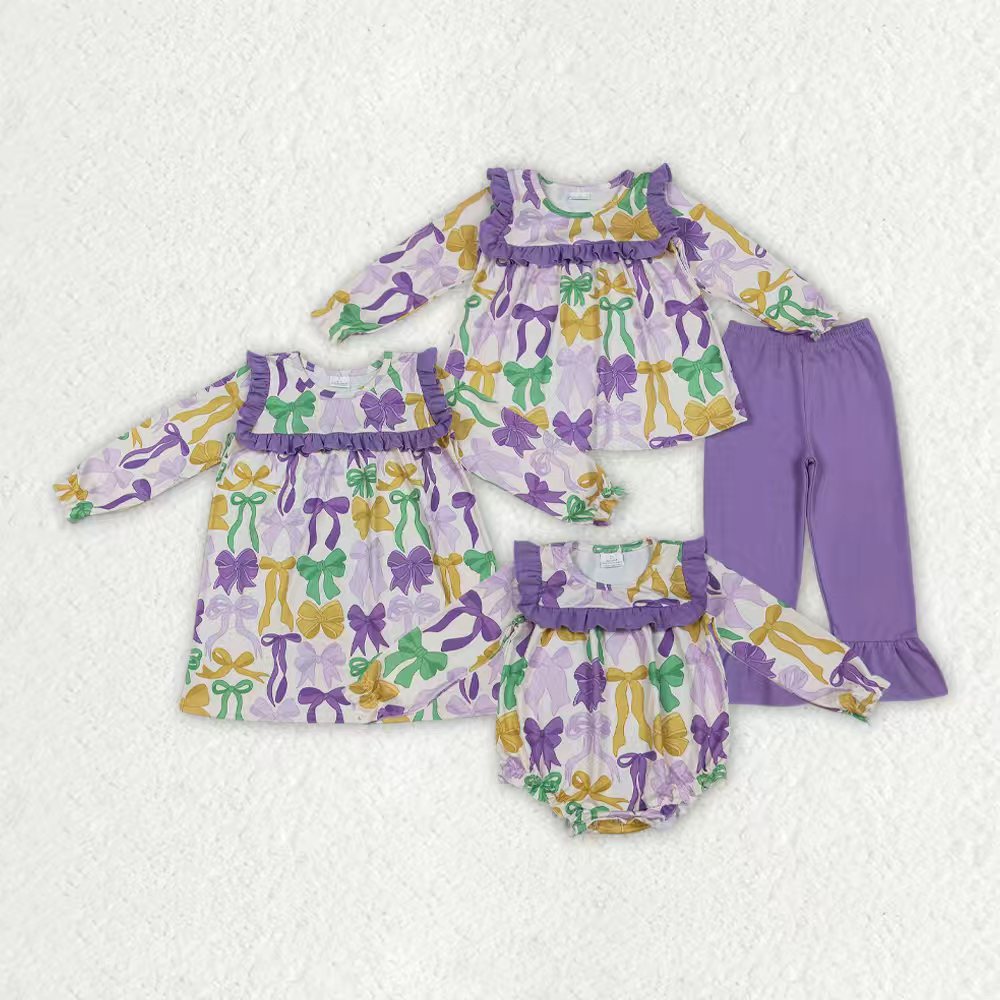 Sibling Baby Girls Mardigras Bows Ruffle Pants Clothes Set Knee Length Dress Rompers