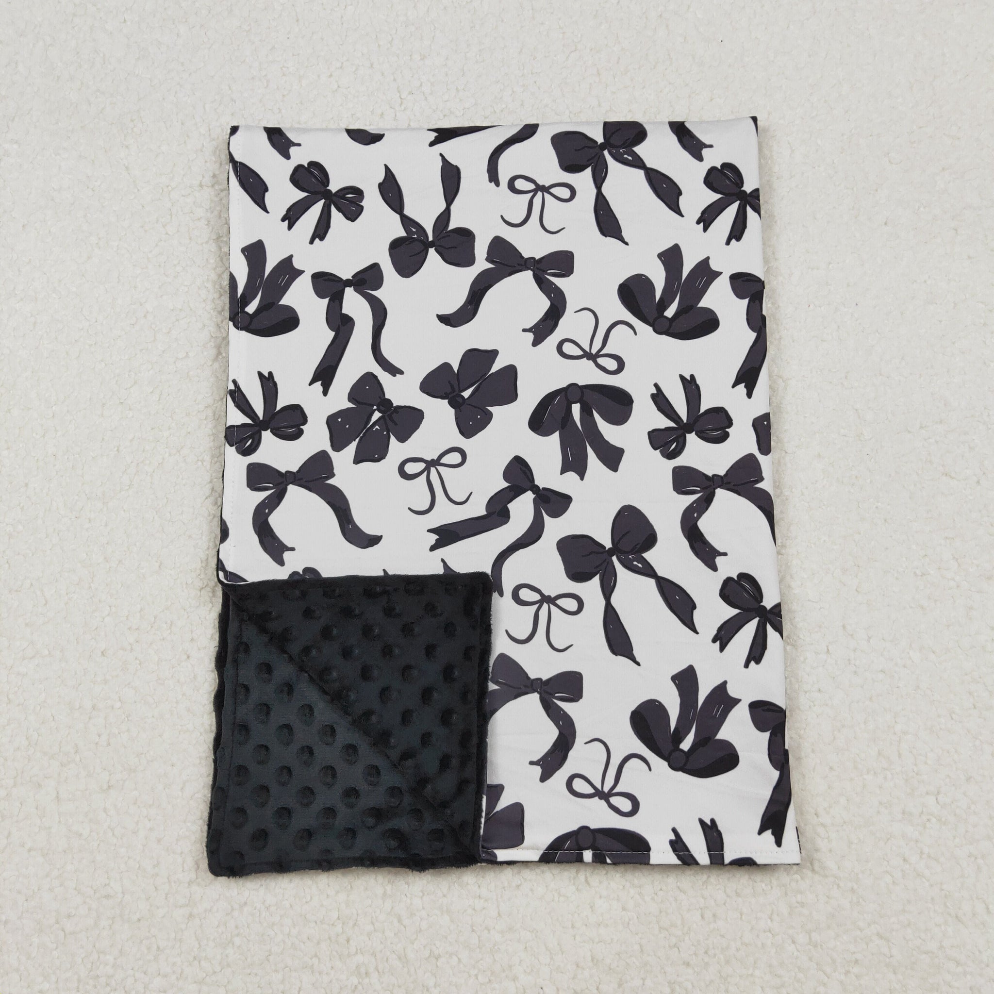 Sibling Baby Kids Black Bows Checked Pajamas Sets Zipper Footie Rompers Blankets